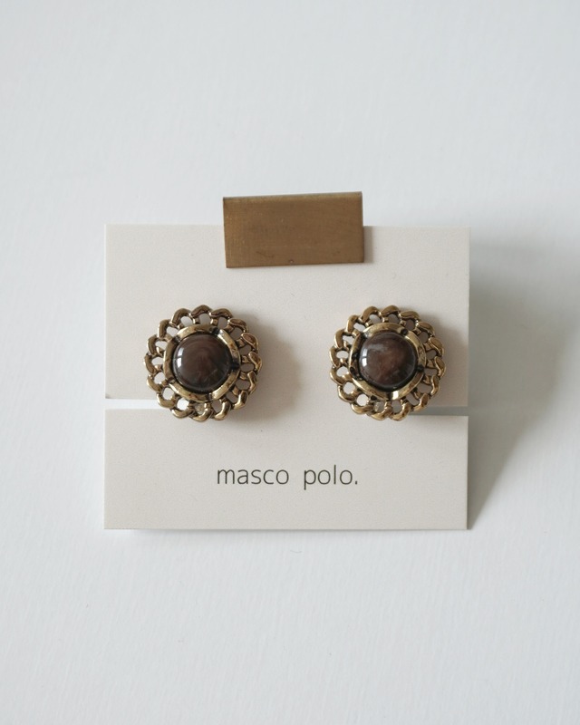 ブラウンとアンティーク感漂うゴールドのメタルボタン 渋めなカラーリングで、カジュアルや古着スタイルにも◎ ▫︎素材 ピアス:チタンポスト イヤリング:ニッケルフリー・調整式クリップ ▫︎サイズ ボタンのみ:17mm ▫︎重さ 片耳 :4g 裏面にレジン使用