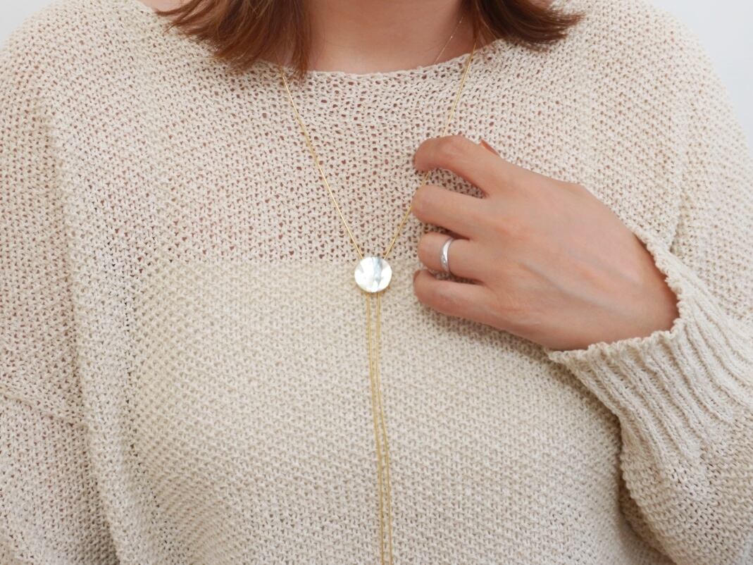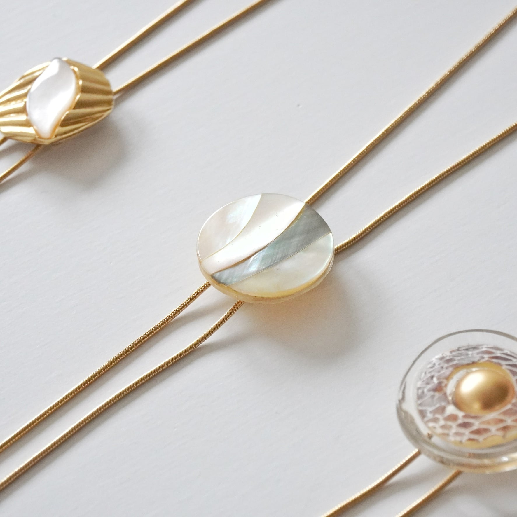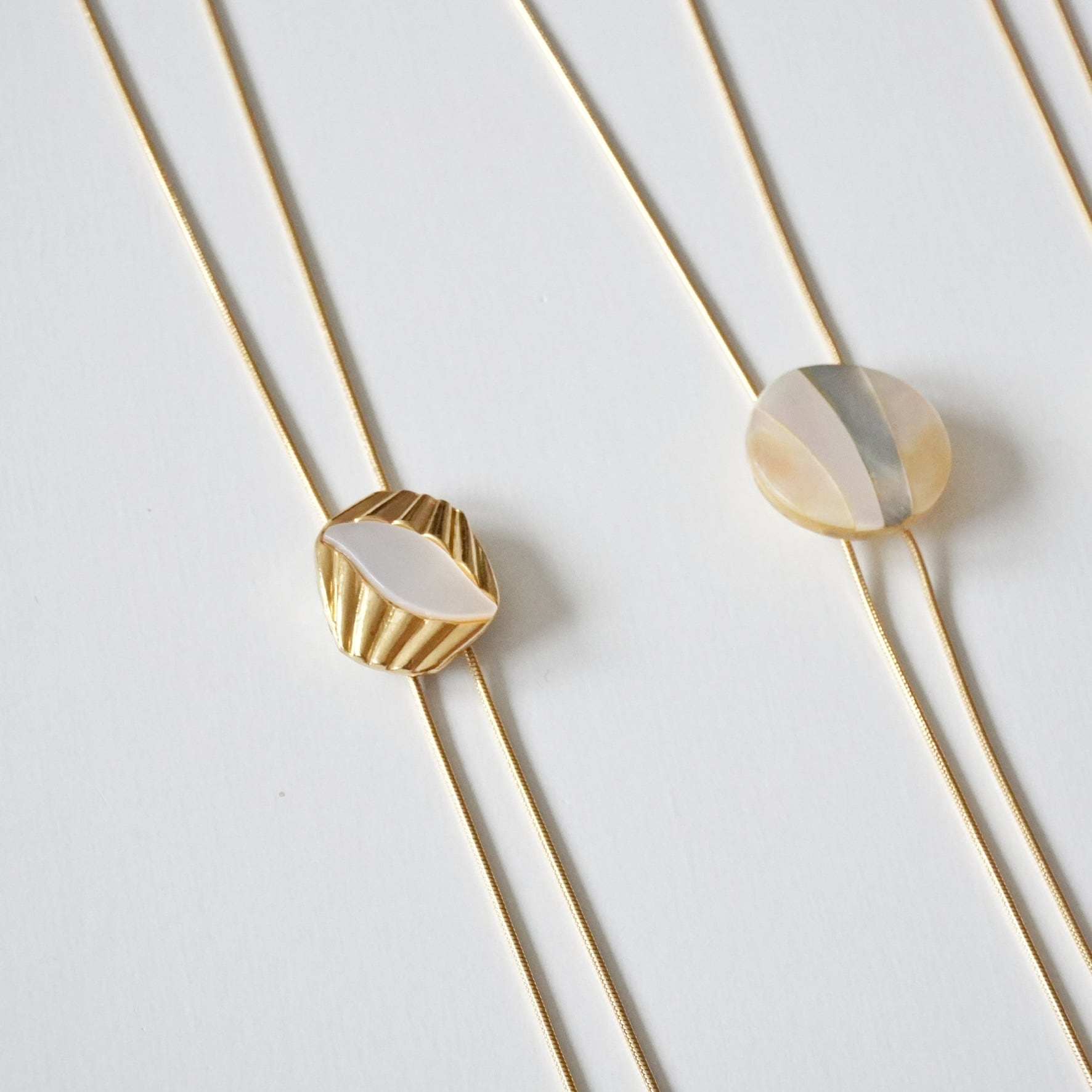 真ん中:白蝶貝と黒蝶貝を幾何学的に合わせたデザインのボタン