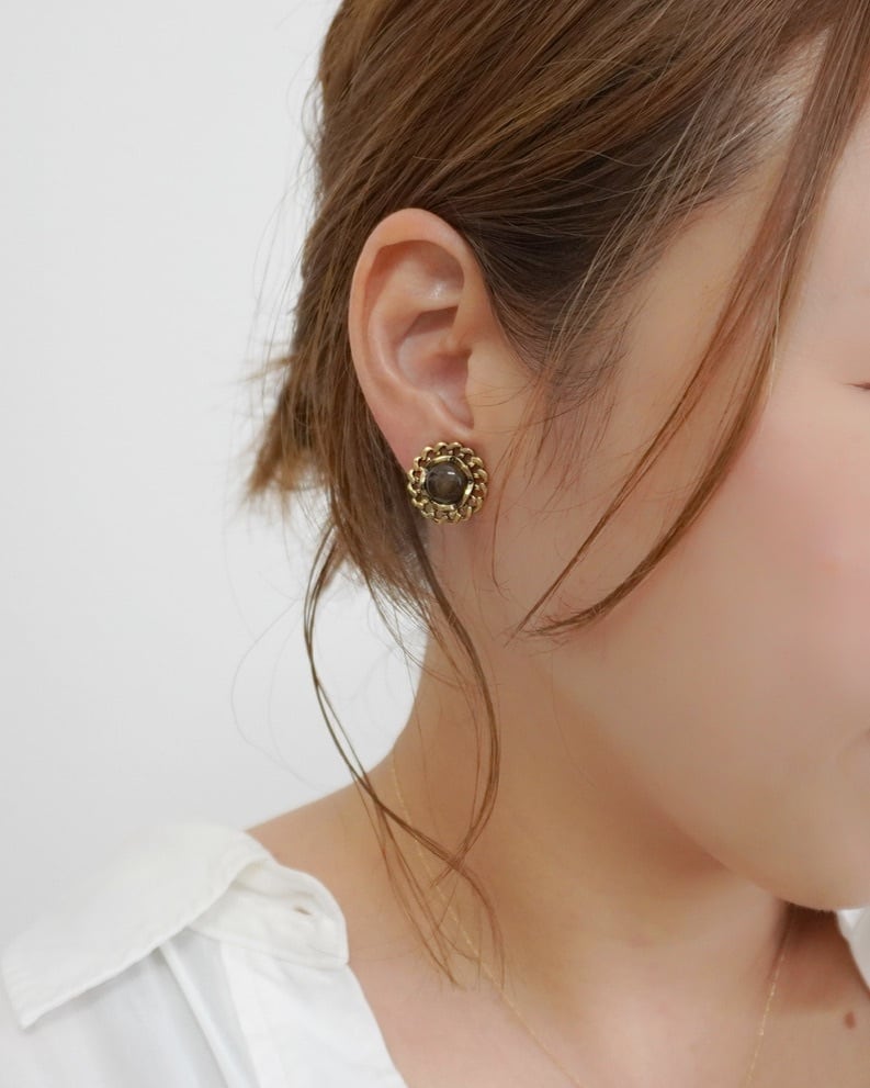 ブラウンとアンティーク感漂うゴールドのメタルボタン