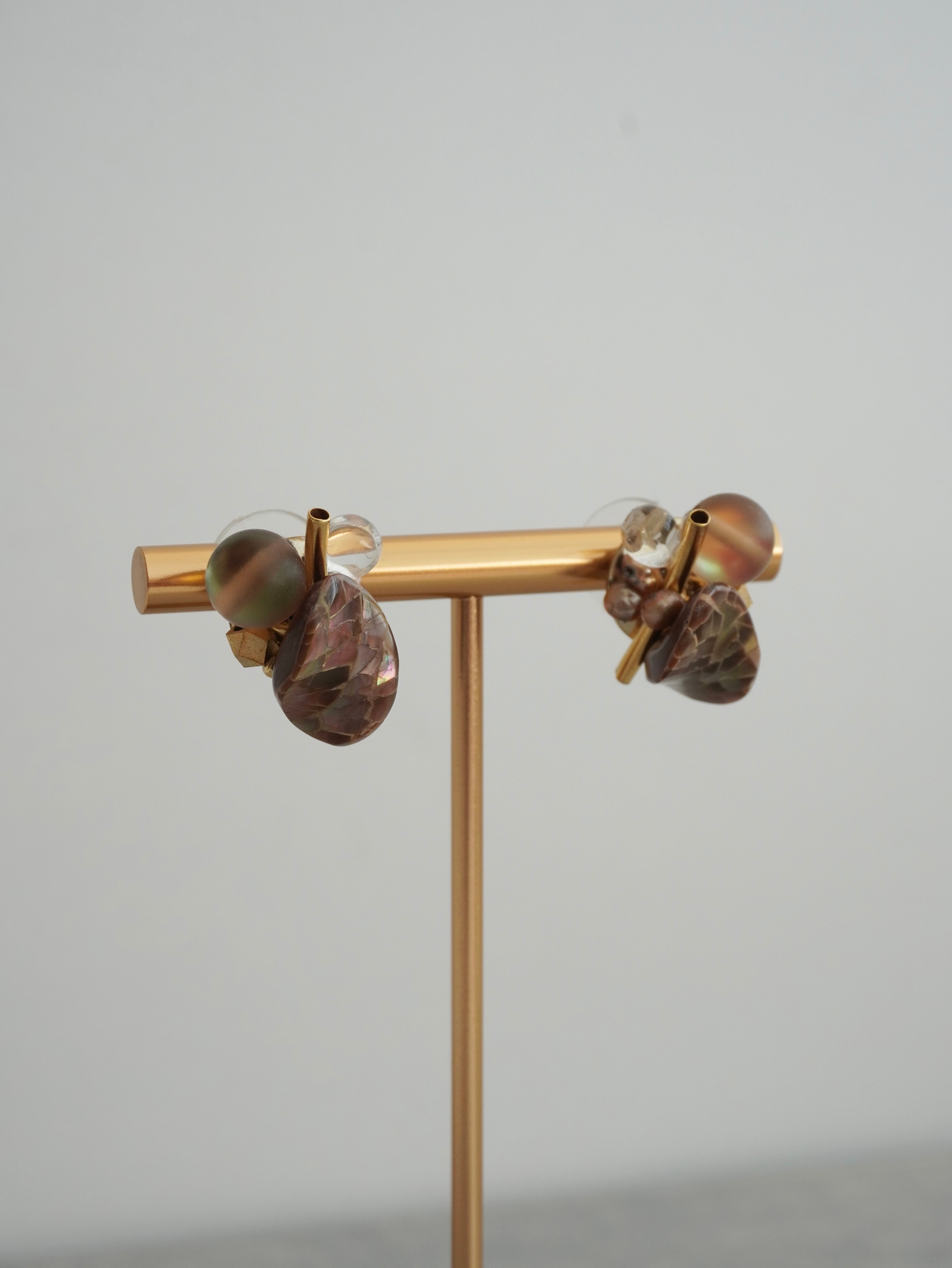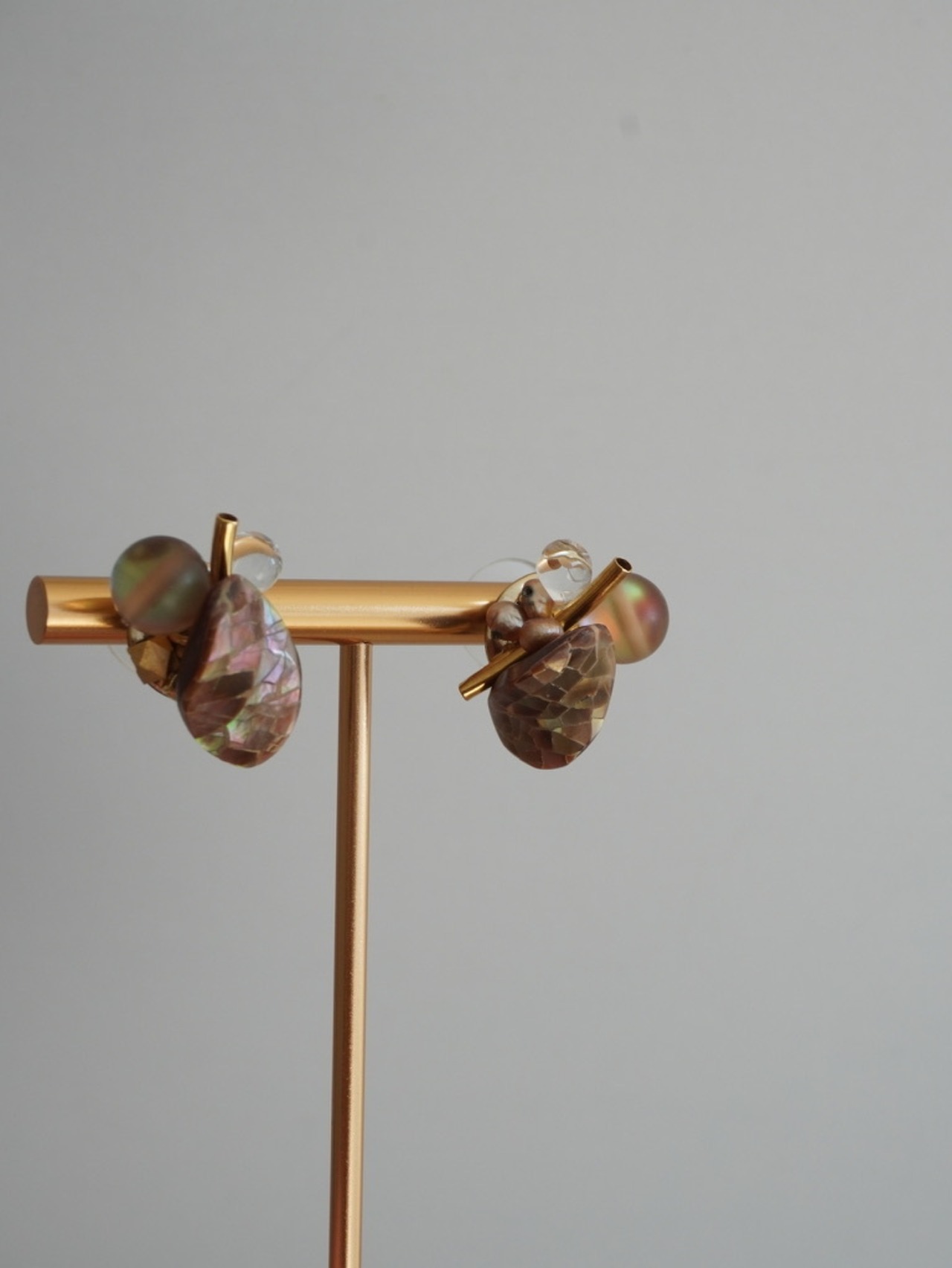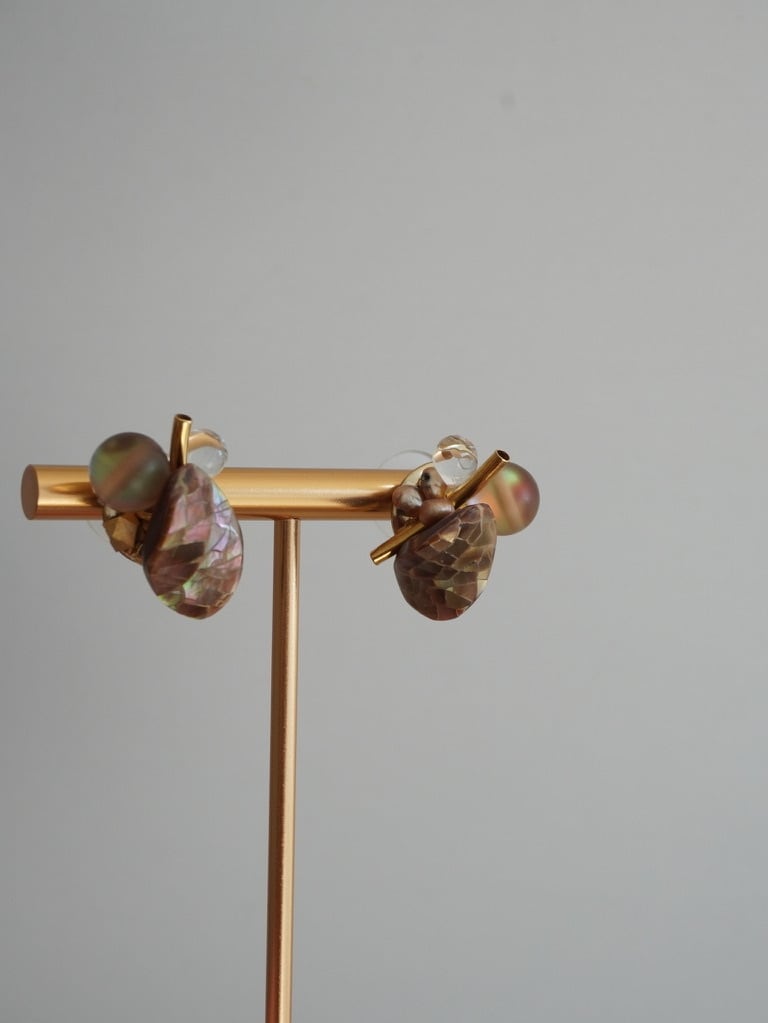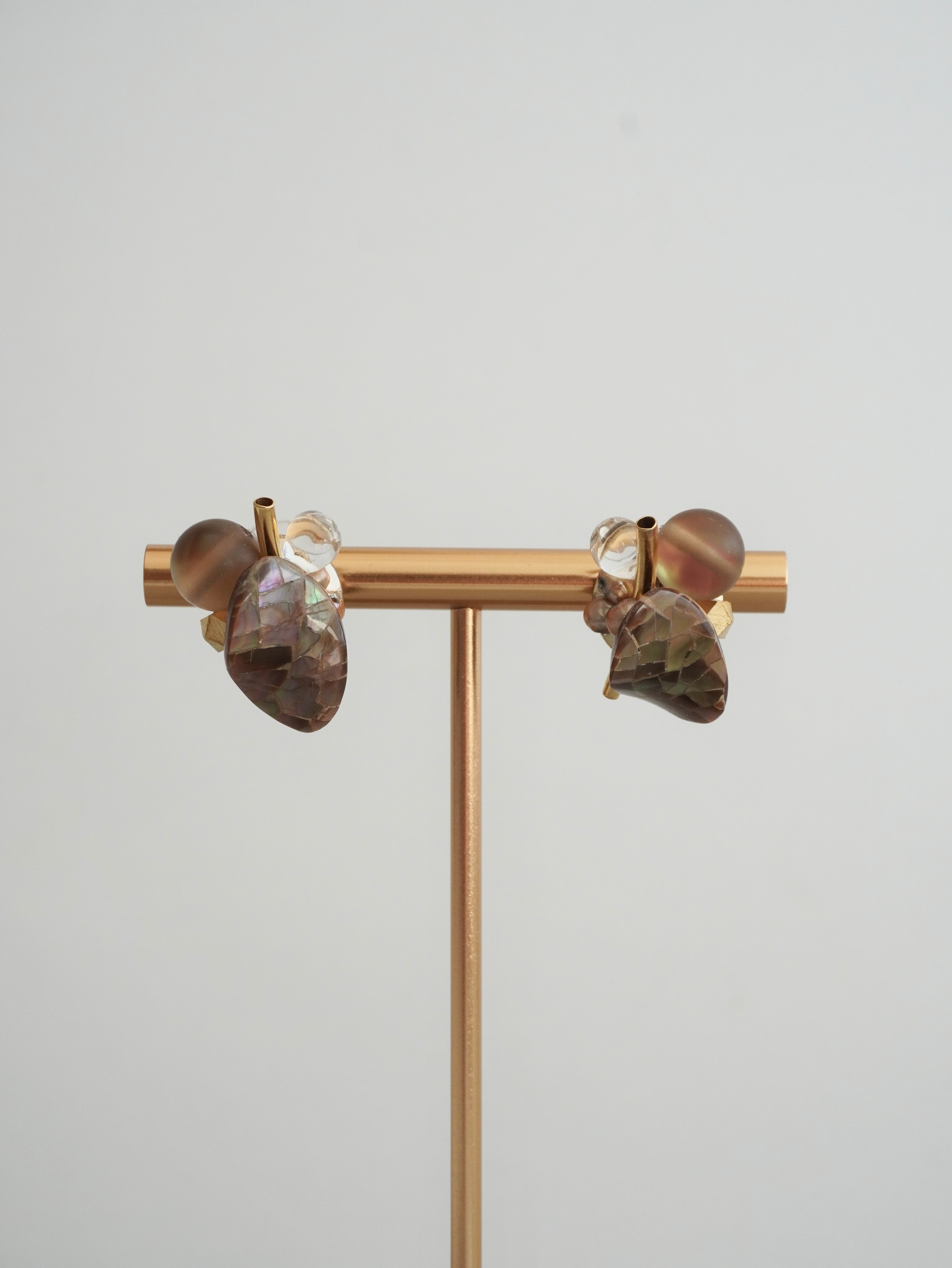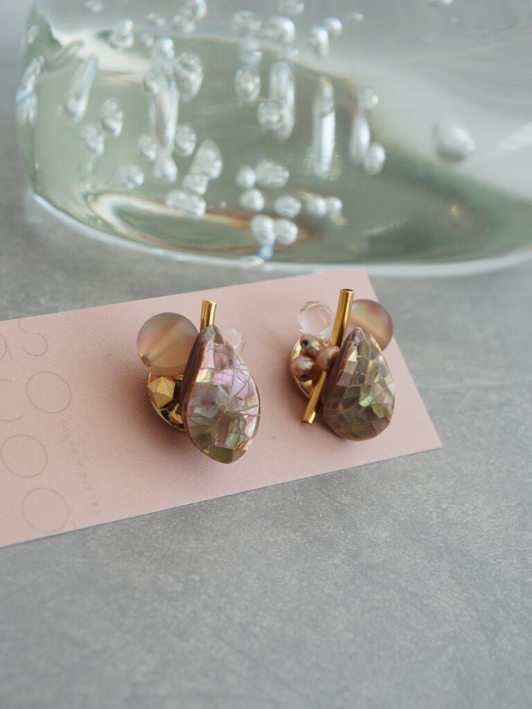 茶蝶貝をモザイクタイルのようにあしらったビンテージボタン
