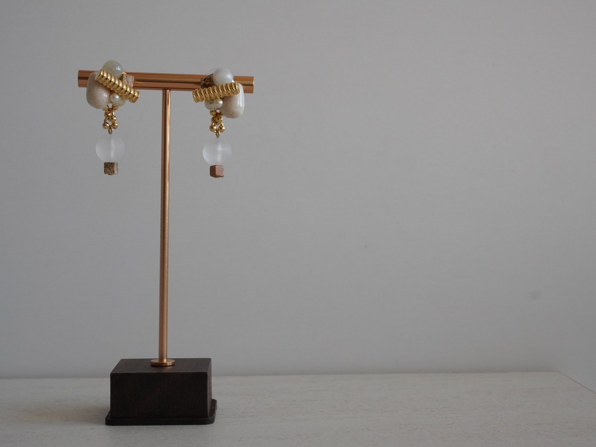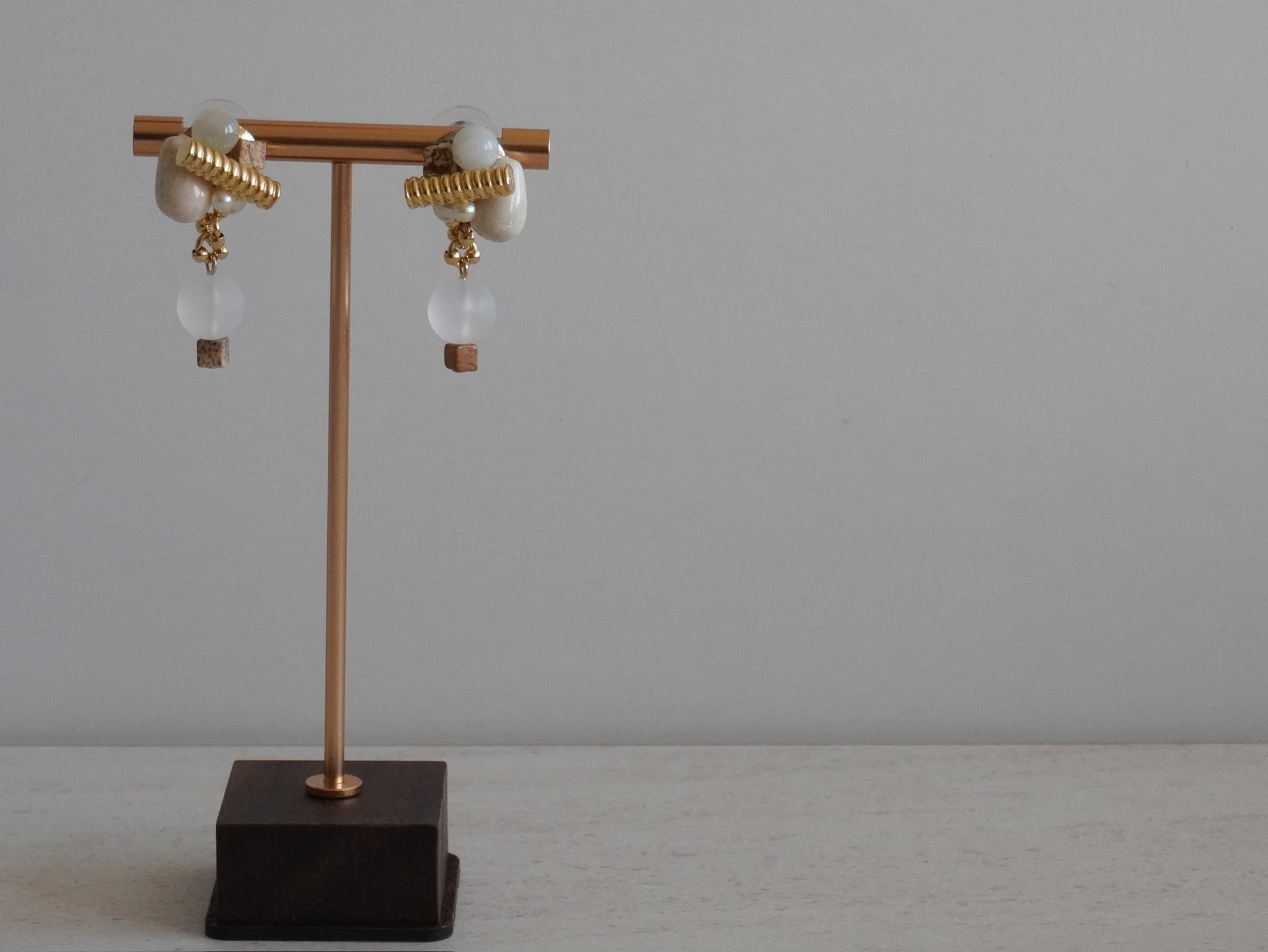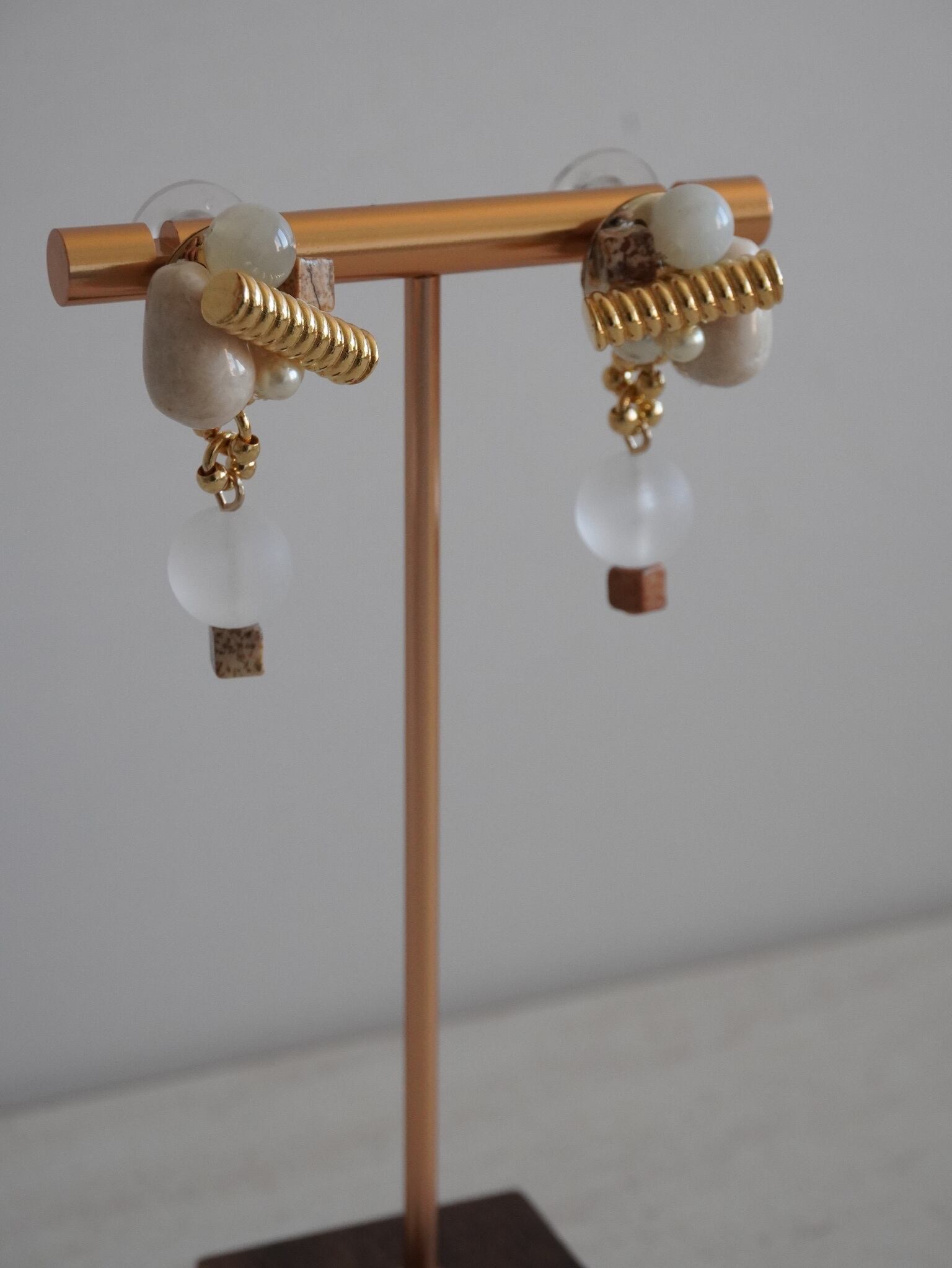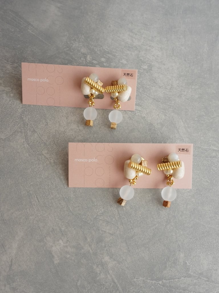 天然石を編み込み、揺れるデザインに