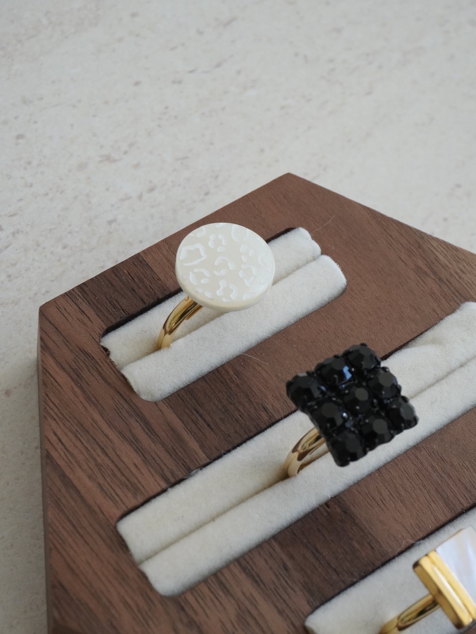 真ん中:ブラックのビジューがキラキラと美しいスクエアタイプ