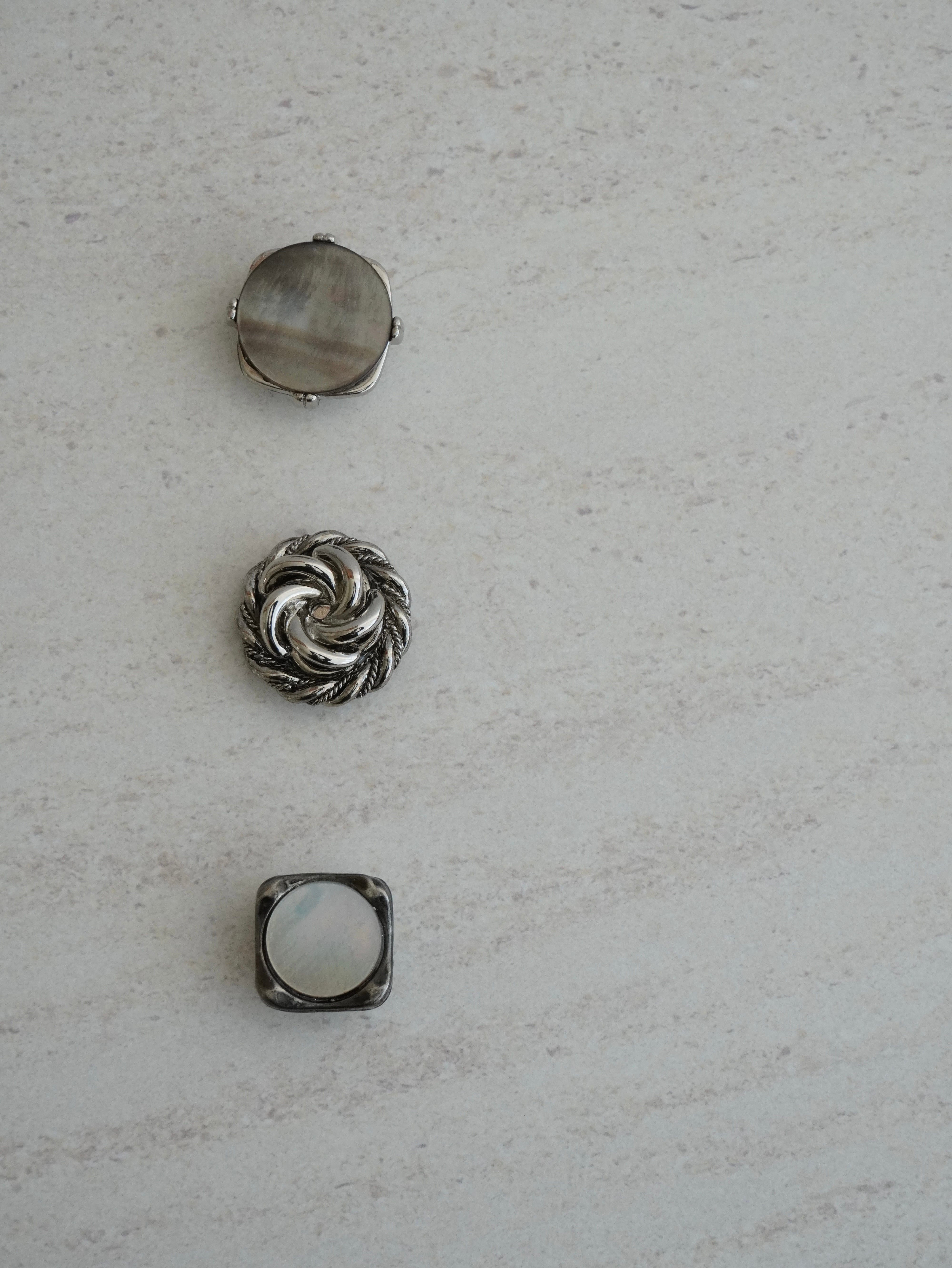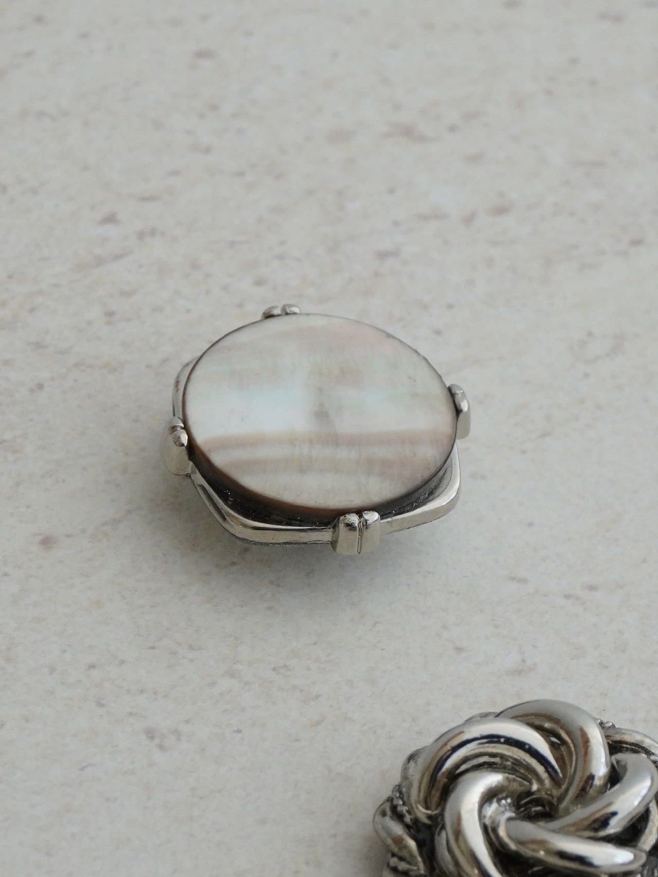 下:暗めのシルバーに白蝶貝を埋め込んだ小降りのボタン