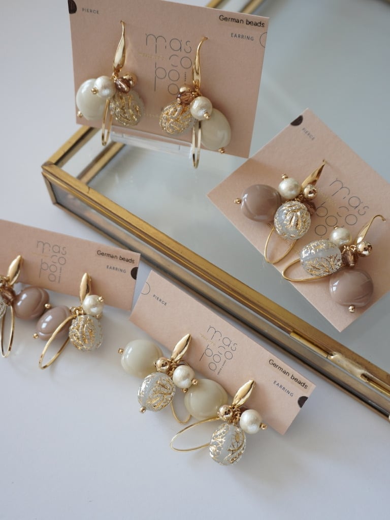 コットンパールなどを合わせて全体的にアースカラーでまとめました