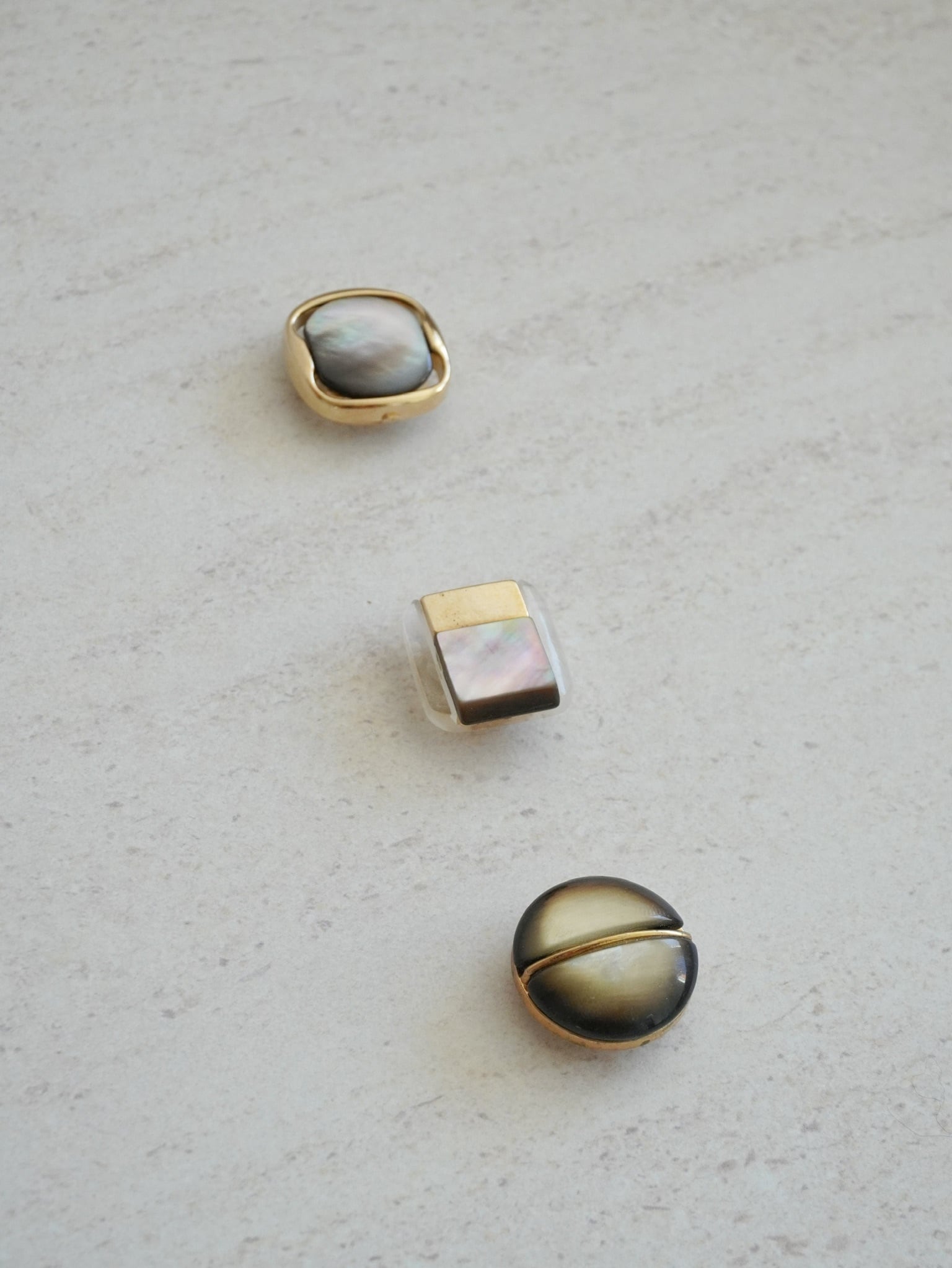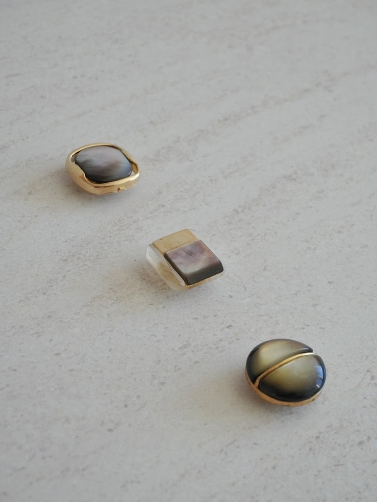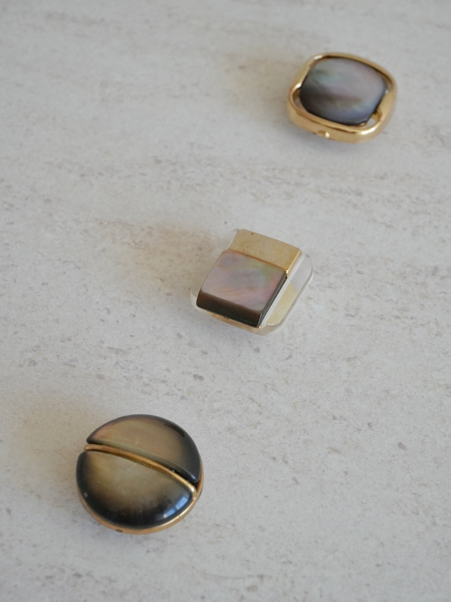 真ん中:クリアとゴールド、黒蝶貝の組み合わせがモダンなデザイン
