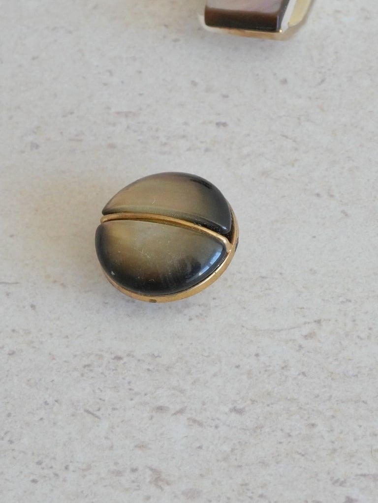 上:黒蝶貝とゴールドのフレームのプラボタン