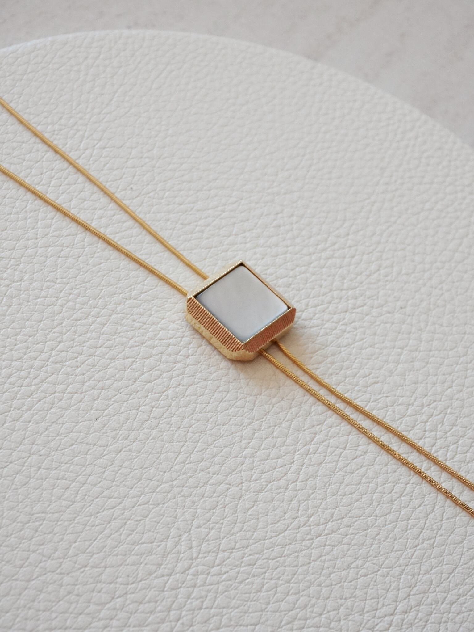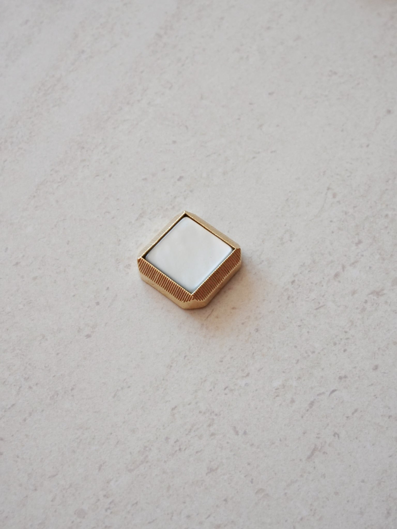 上:高級感あるスクエアタイプのシェルボタン