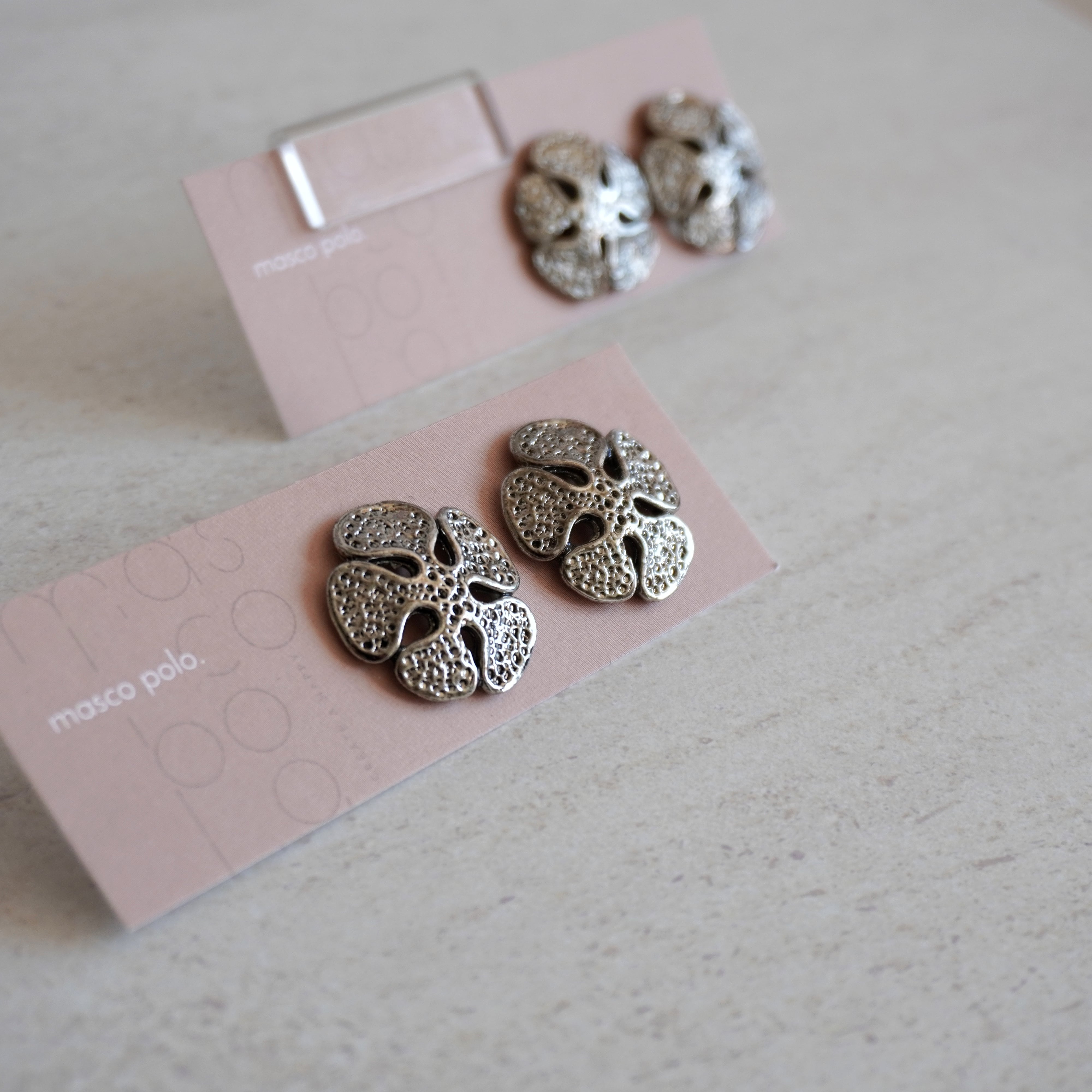 渋いシルバーメタルが珍しいお花のモチーフボタン