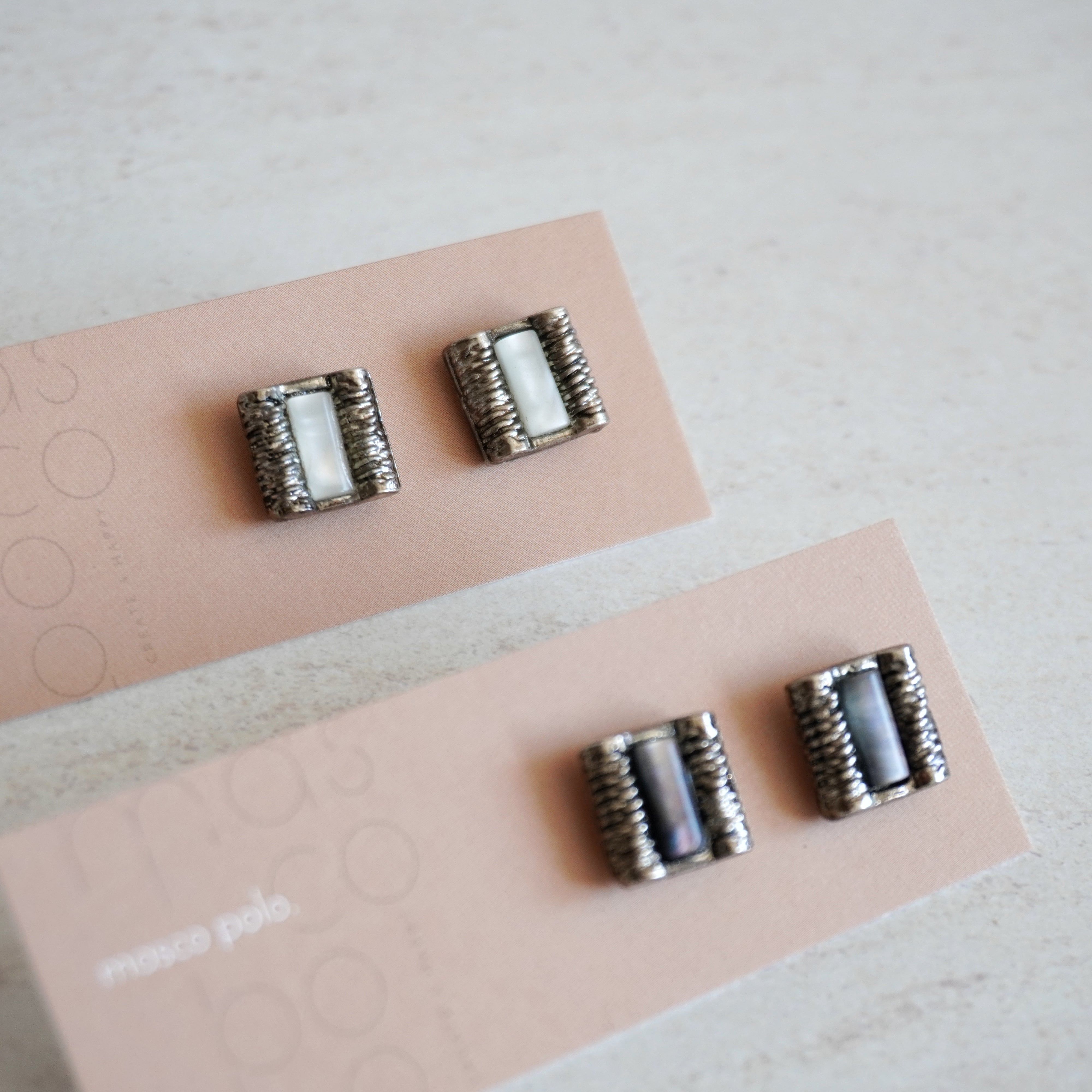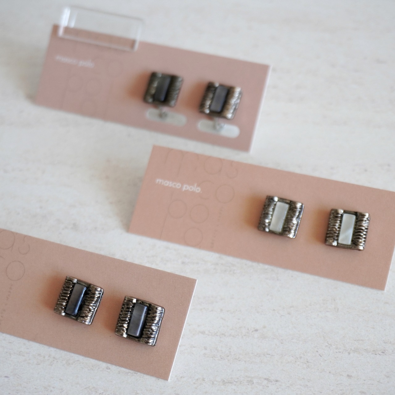 メタルの中に、マーブル調のスティックが嵌め込まれていて、さりげなく着けられます
