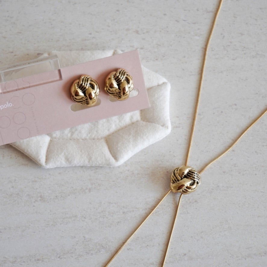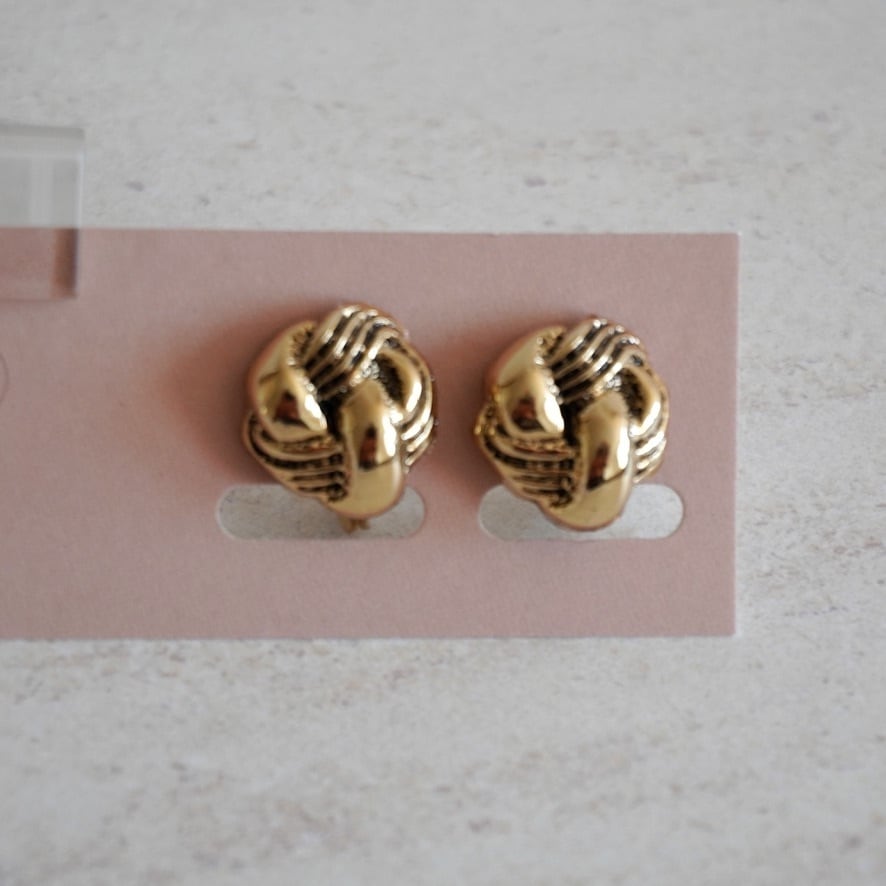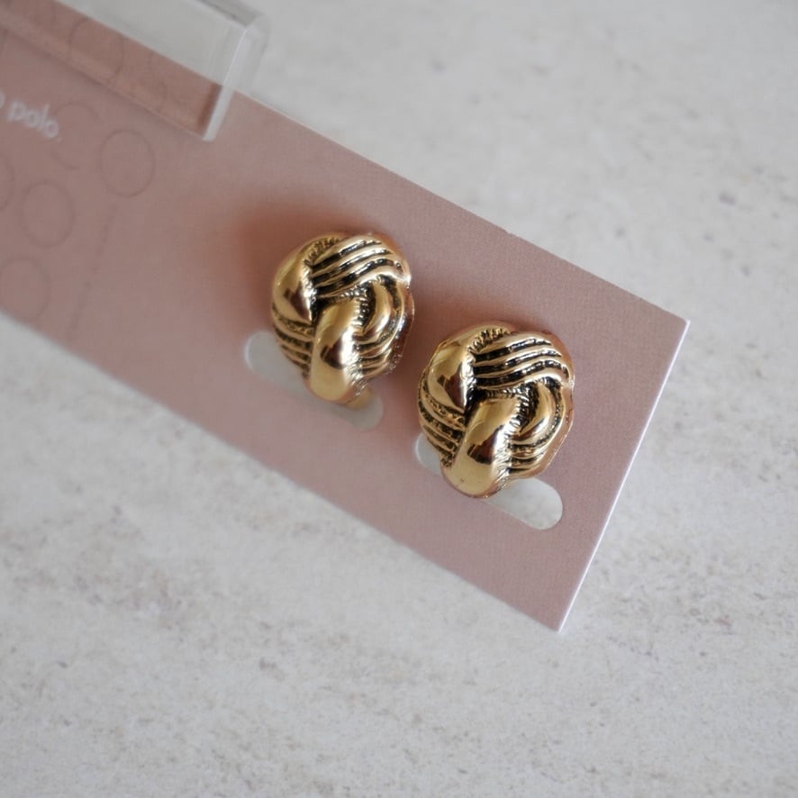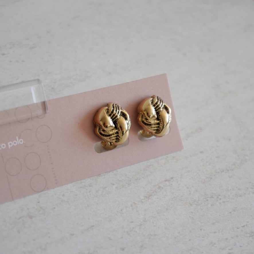 燻したようなゴールドと、結び目のようなデザインが可愛く