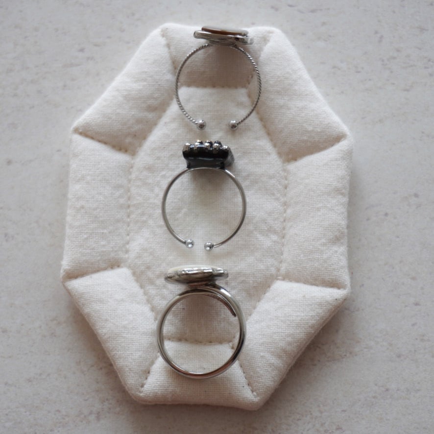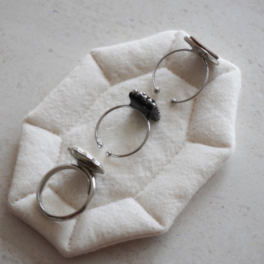 真ん中:ドイツ製のガラスボタン。シルバーとゴールドのミックスカラーが魅力