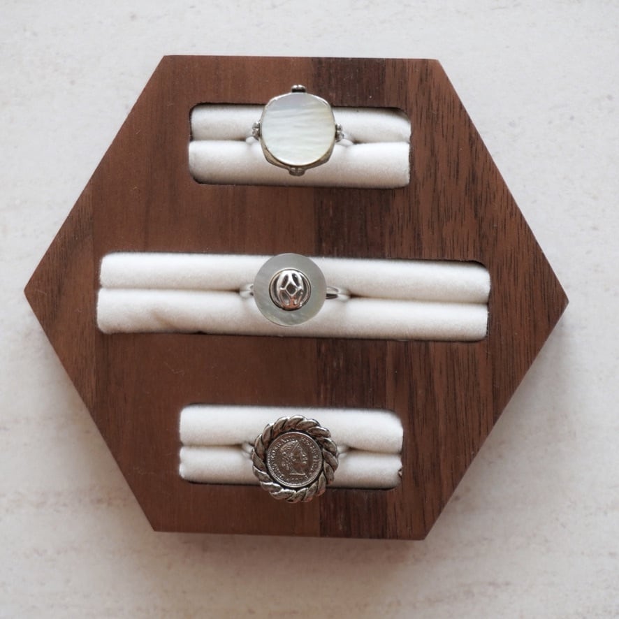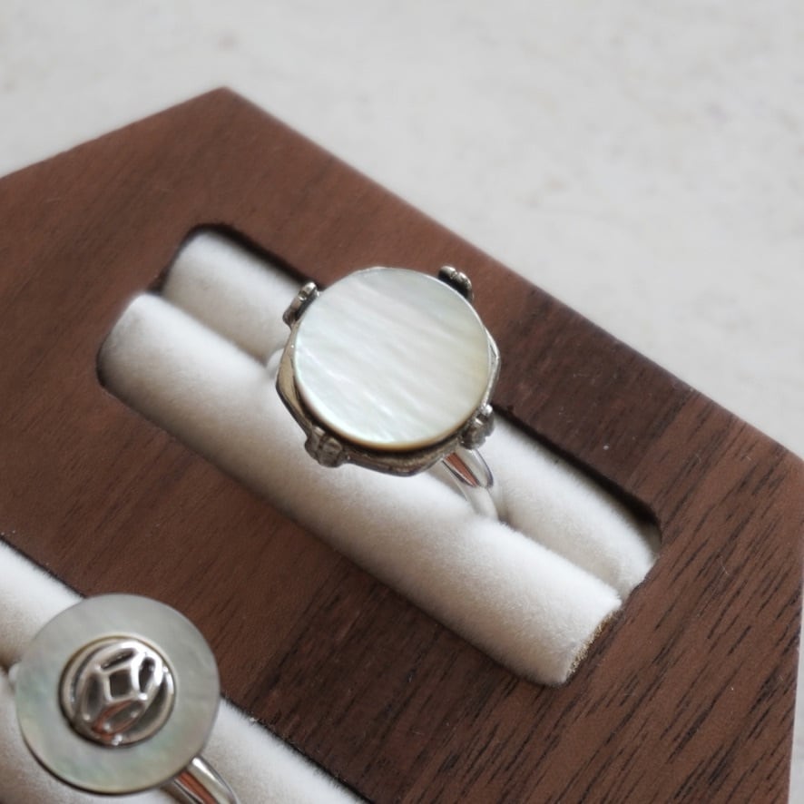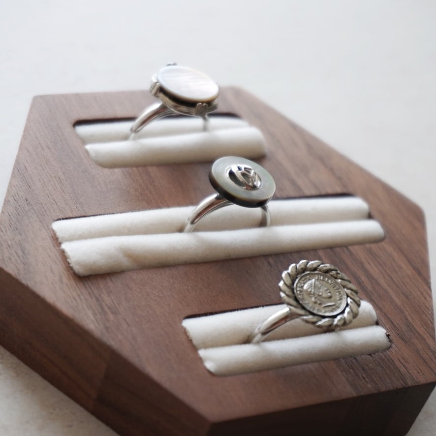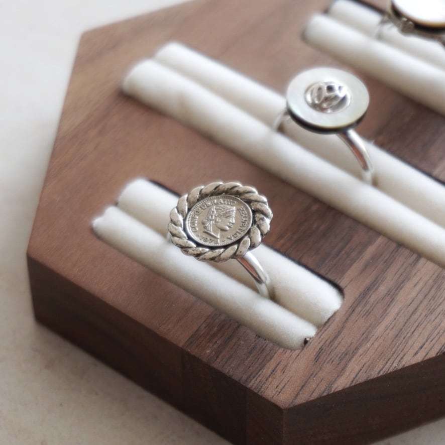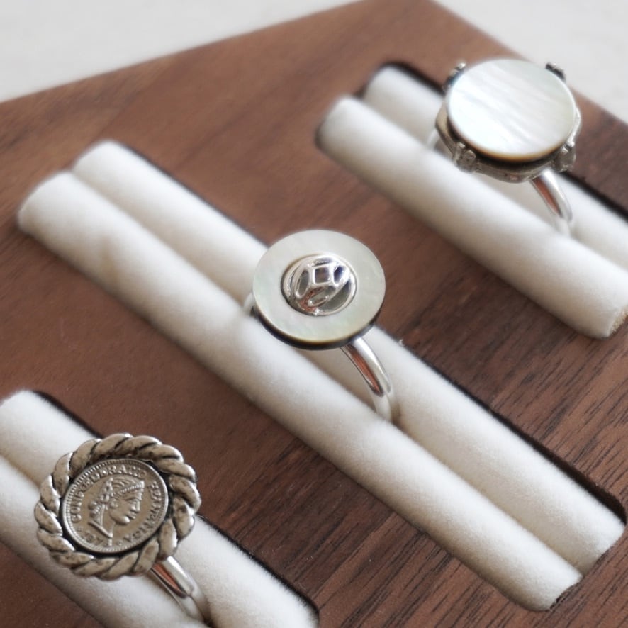 下:コインを埋め込んだようなデザイン。ビンテージ感がありユニセックスに使えます