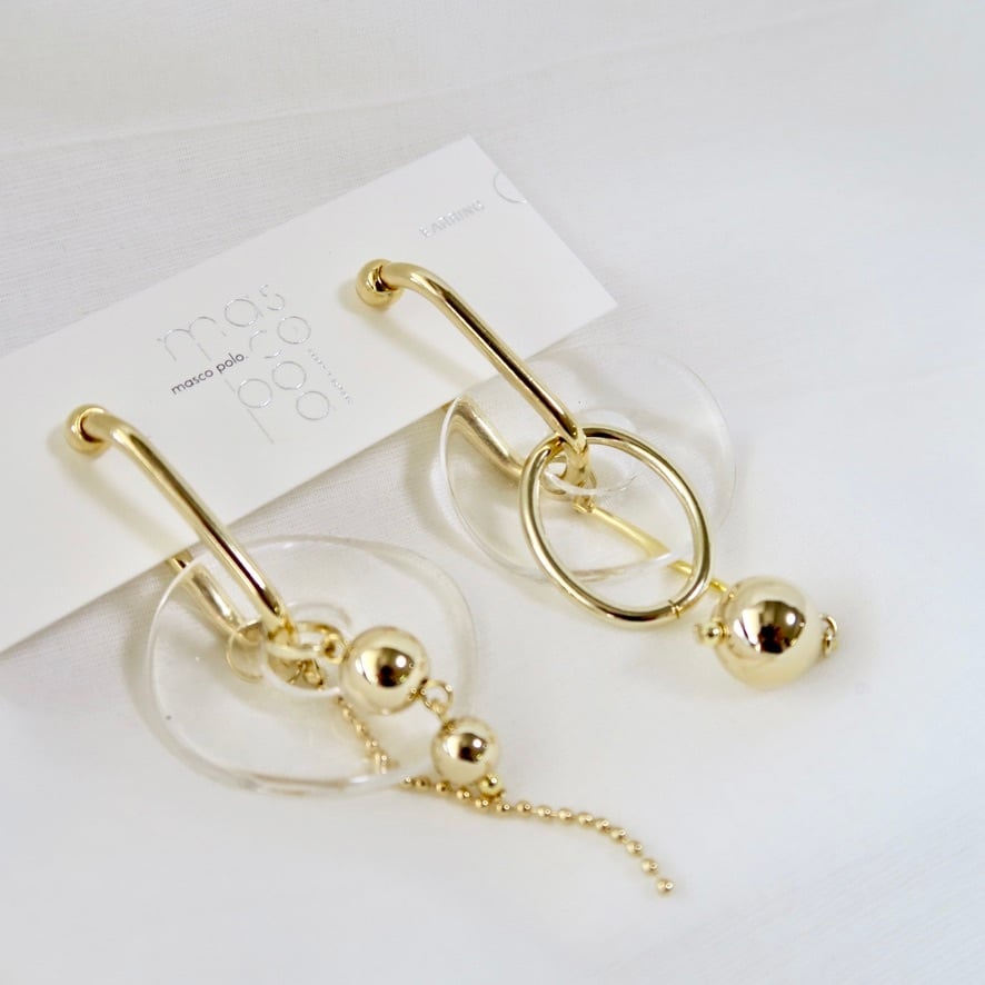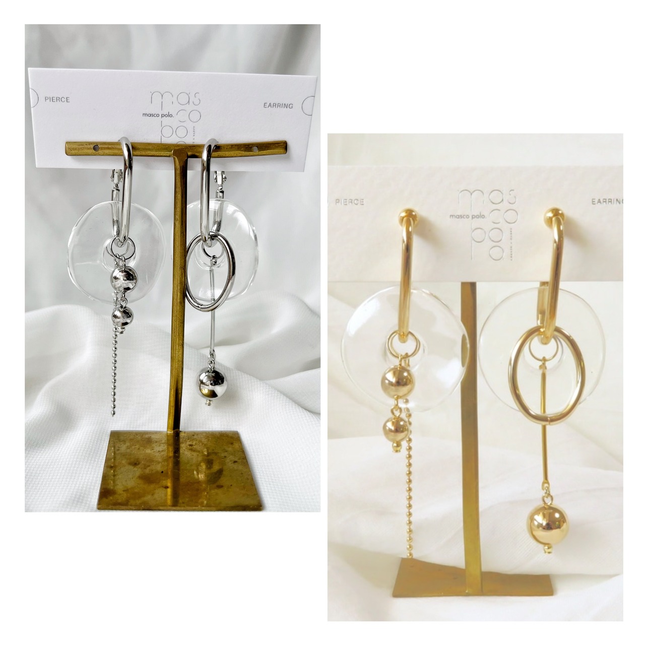 左右3つずつ異なるチャームが揺れる少し大振りなデザインです