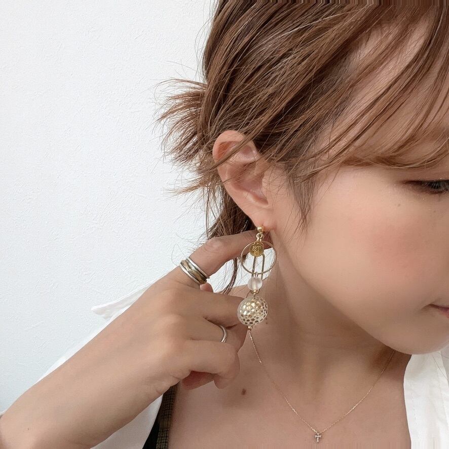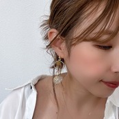 アシンメトリーで揺れるフープやチェーンが、顔まわりを華やかにしてくれます