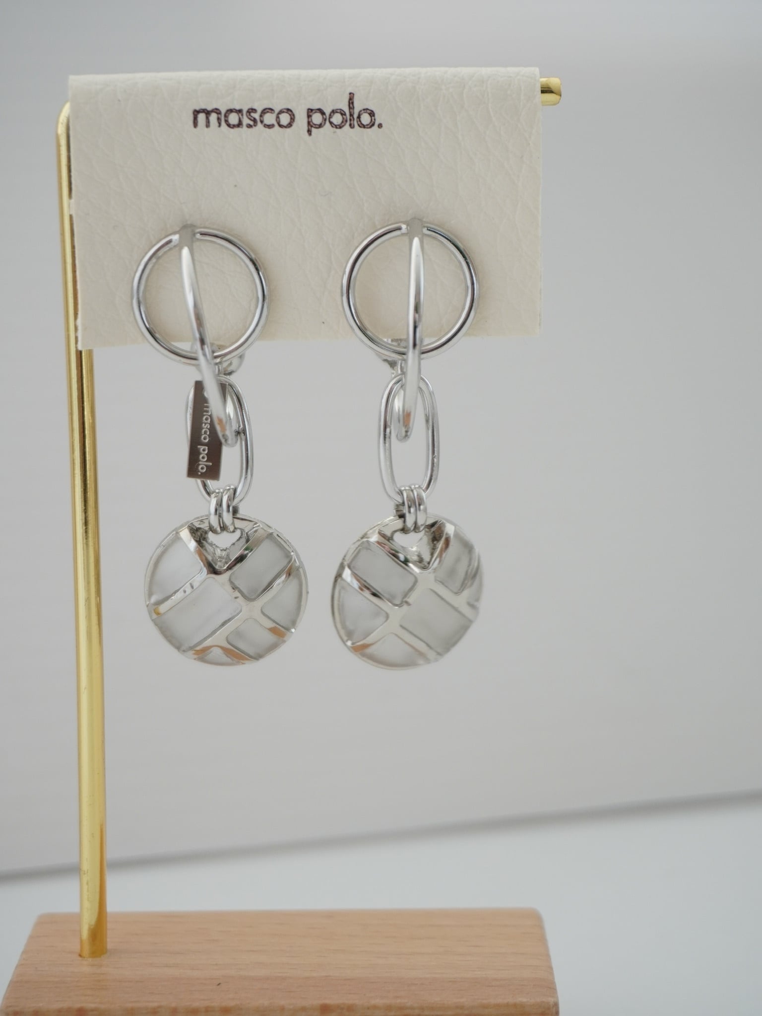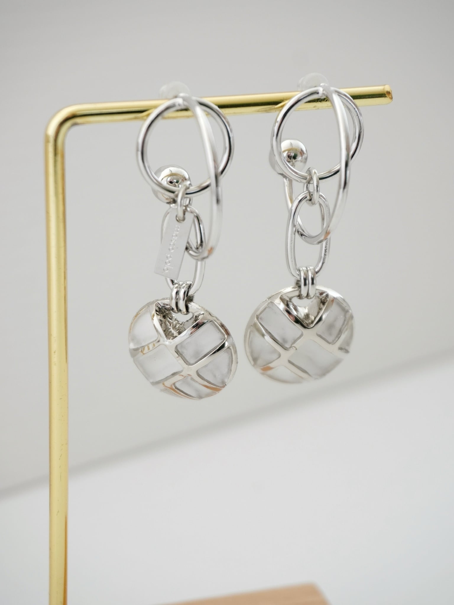 立体的な作りのピアスに、透け感のあるボタンを揺らしたデザイン